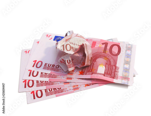 banknote, heap, bundle, crumpled, ball, paper, money, ticket, euro, 10, europa, euro, money, crumpled, species, waste, liquid, white background, cut-out, isolated