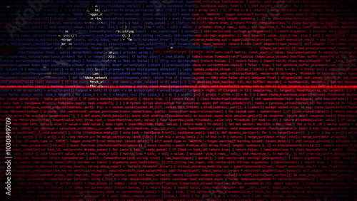 Binary code on flag of Samoa. Program source code or Hacker concept on Samoan flag. Samoa digital technology security, hacking or programming