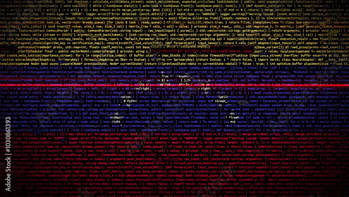 Binary code on flag of Venezuela. Program source code or Hacker concept on Venezuelan flag. Venezuela digital technology security, hacking or programming
