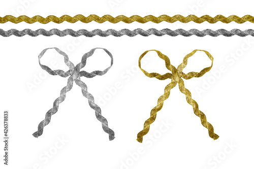bindweed, birthday, bow, celebration, christmas, closeup, connection, curled, curve, decor, decoration, decorative, design, element, empty, festive, gift, gold, holiday, isolated, object, ornate, party, present, ribbon, set, shiny, silver, soft, spiral, tape, textile, texture, valentine, white, enclosed
