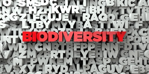 BIODIVERSITY - Red text on typography background - 3D rendered royalty free stock image. This image can be used for an online website banner ad or a print postcard.