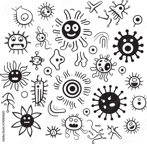 Biohazard Blend Bacteria and Virus Emblem Icon Virulent Variations Vector Logo Featuring Virus and Bacteria