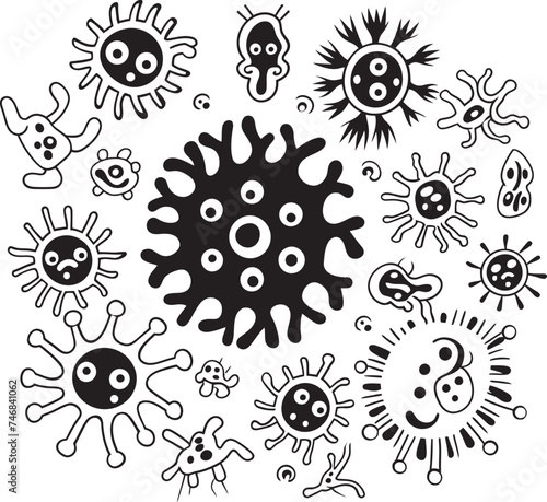Biohazard Blend Bacteria and Virus Emblem Icon Virulent Variations Vector Logo Featuring Virus and Bacteria