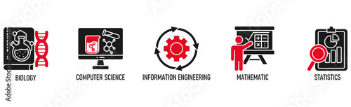 Bioinformatics banner web icon vector illustration concept with icon of biology, computer science, information engineering, mathematics and statistics