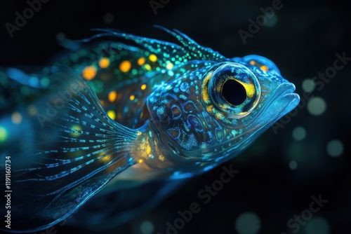 Bioluminescent lanternfish suspended in deep ocean darkness closeup shot