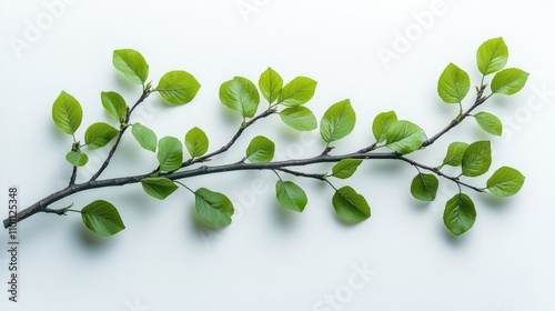 Birch branch with fresh green leaves on a clean white background symbolizing renewal and the essence of new life and growth