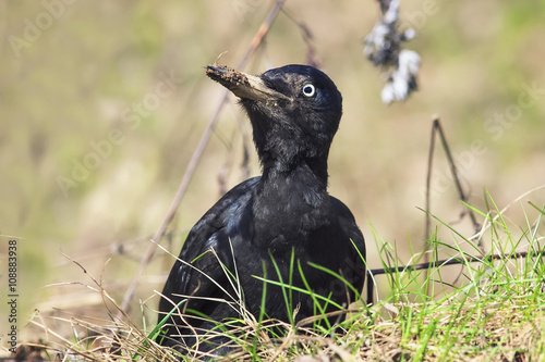 bird black woodpecker sitting on the ground amidst the beautiful lush grass