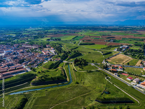 Bird's-eye view of the Renaissance city of Palmanova. Friuli.