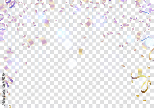 Birthday balloons template illustration. Confetti and ribbons, Celebration background