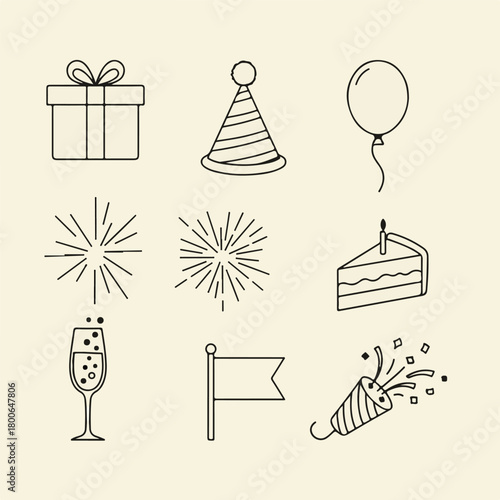 party, gift, cake, balloon, celebration, occasion, gathering, important, energetic, precious, cheer, invitation, exciting, sparkling, friends, wish, group, quality, artistic, dance, lively, valuable, idea, theme, graphic, special, streamer, playful, music, joy, delightful, drawing, surprise, item, confetti, awesome, event, fun, hand-drawn, family, treat, premium, elegant, retro, present, happy, vignetting, pack, vibrant