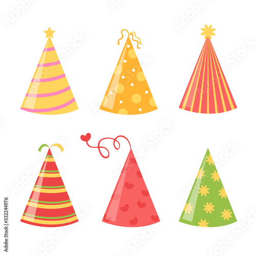 Birthday party hats isolated icon set. Vector flat graphic cartoon illustration design
