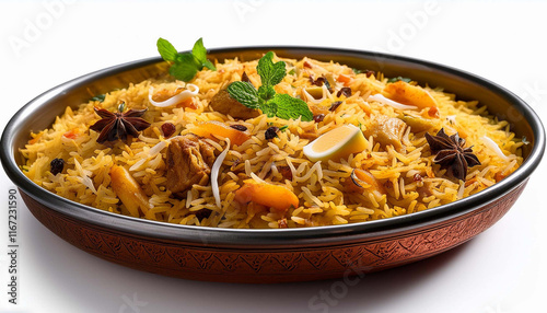 Biryani isolated on a white background, top view