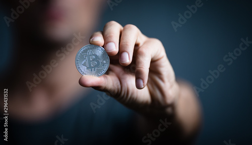 Bitcoin - Cryptocurrency concept - cryptocurrency being held as a value conserving asset as well a mean of swift exchange having a fungible, antiinflationary, decentralized nature