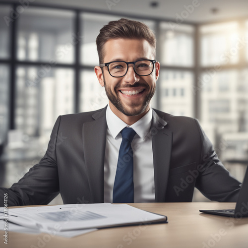 business, businessman, suit, office, clerk, happy, smiling, glasses, desk, work, manager, person, director, men at work, boss, smile, professional, man, photogenic, confident