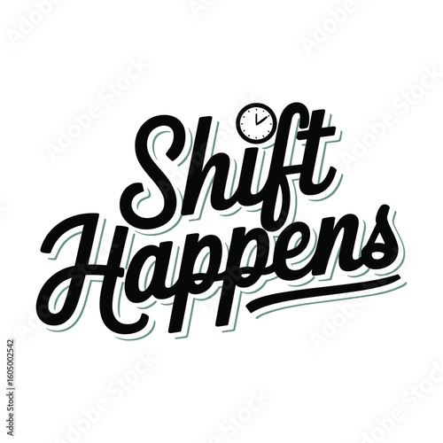 text, typography, lettering, script, handwriting, font, black, green, clock, time, watch, symbol, graphic, design, t-shirt, apparel, concept, phrase, saying, quote, humor, irony, white background, isolated, simple, clean, modern, casual attire, statement