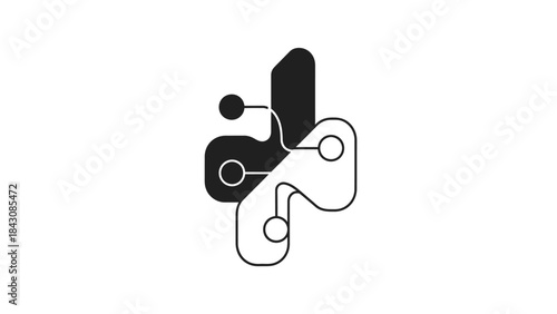 abstract, symbol, black-and-white, connected, circle, line, circuitry, technology, network, datum, communication, connection, digital, modern, design, graphic, icon, concept, science, innovation, structure, pattern, geometric, node, pathway, information, system, logic, flow, integration, futuristic, clean, simple, bold