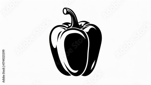 Black and white bell pepper illustration on a white background.