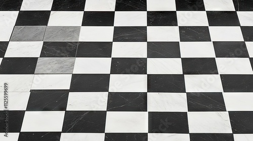 Black and White Checkerboard Marble Floor Tiles Pattern Design