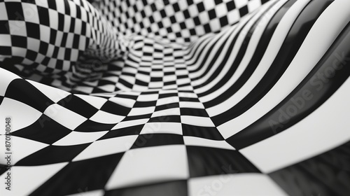Black and white checkerboard pattern with a 3D twist, bold and modern.