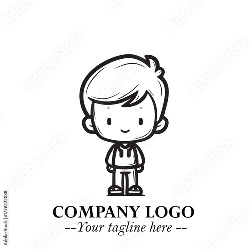 Black and White Chibi Boy Illustration with Jacket and Boots in Bold Thick Line Art Minimal Style