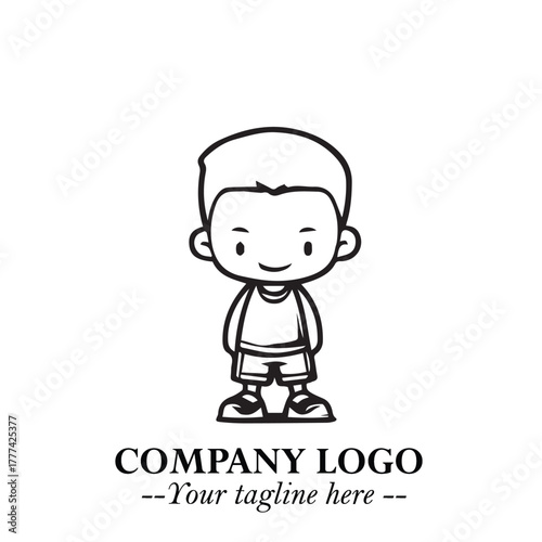 Black and White Chibi Boy Illustration with Jacket and Boots in Bold Thick Line Art Minimal Style