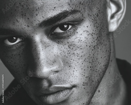 man, portrait, monochrome, closeup, freckle, skin, face, beauty, black-and-white, detail, head shot, attractive, male, human, model, studio shot, wellness, skincare, cosmetic, health, clean, style, photogenic, natural, artistic, raw, emotion, masculine, one person, ear, eyebrow, eye, head, lip, nose, monochromatic, texture, youth