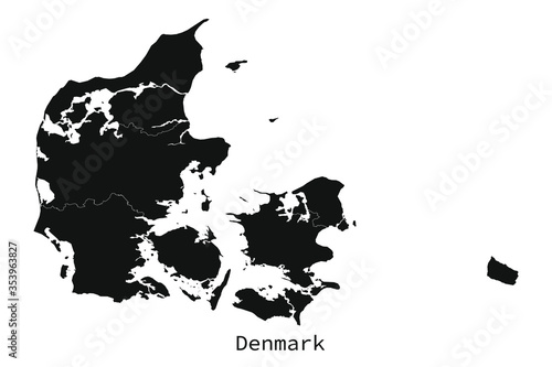 Black and white detailed Denmark map with regions outlined vector