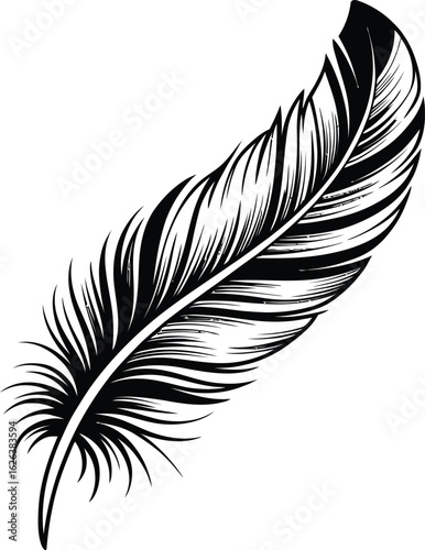 feather, quill, bird, wing, writing, drawing, illustration, black-and-white, design, art, graphic, isolated, simple, elegant, detail, natural, texture