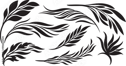 feather, silhouette, black, white, leaf, plant, nature, abstract, minimalist, design, element, graphic, illustration, simple, elegant, delicate, curved, shape, form, texture, pattern, organic, modern, artistic, creative, decorative, symbolic, expressive, visual, striking, monochromatic, neutral, clean, crisp, isolated, background, white background, black-and-white, botanical, motif, stylised
