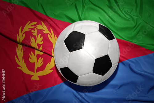 black and white football ball on the national flag of eritrea