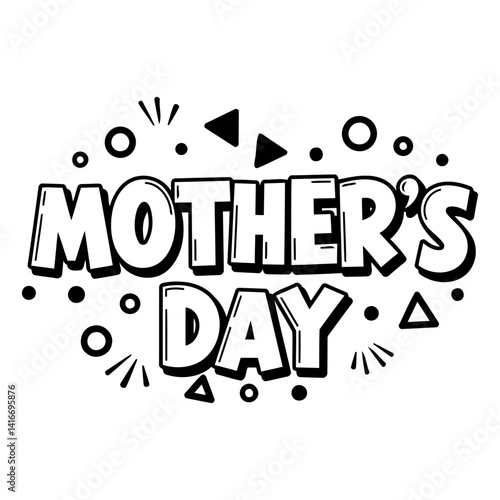Black and white graphic design of "Mother's Day" with bold, comic-style lettering and decorative elements. Suitable for social media posts, advertising, and greetings cards.