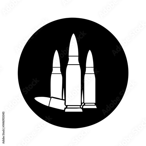 Black and white icon of ammunition cartridges with a distinctive circle shape