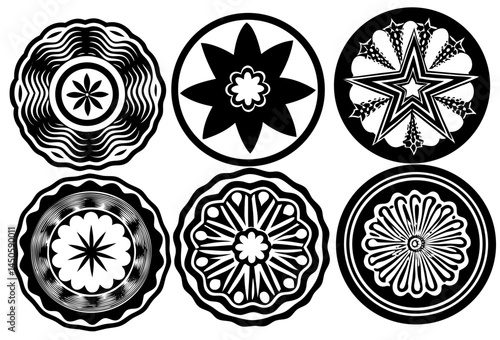 vector, icon, pattern, design, flower, symbol, set, illustration, circle, wheel, element, signs, black, shape, art, floral, ornament, silhouette, sun, decoration, gear, round, tattoo, car, tribal