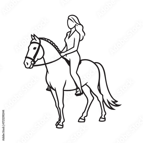 woman, horse, riding, equestrian, beautiful, body, elegant, stylish, outfit, vector, illustration, line art, black, white, drawing, vignetting, outline, silhouette, graceful, confident, minimal, minimalist, simple, chic, fashion, strong, female, rider, horseback, lifestyle, graphic, design, modern, artwork, aesthetic, decorative, posh, posture, athletic, feminine, contemporary, sport, leisure, stable, countryside, charming, equine, composition