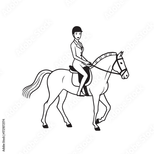 vector, illustration, line art, black, white, drawing, vignetting, outline, silhouette, graceful, confident, minimal, minimalist, simple, chic, fashion, strong, female, rider, horseback, lifestyle, graphic, design, modern, artwork, aesthetic, decorative, posh, posture, athletic, feminine, contemporary, sport, leisure, stable, countryside, charming, equine, composition, digital, creative, abstract, art