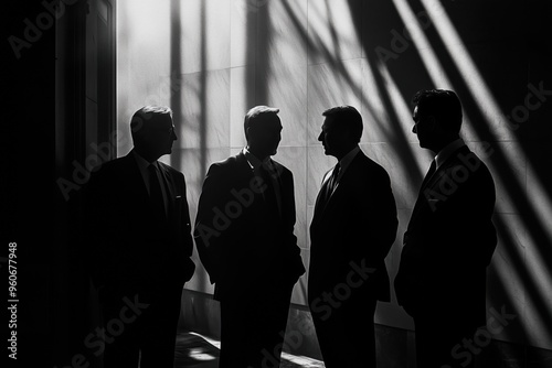 black-and-white, photograph, essence, 4, vintage, retro, portrait, leadership, business, executive, group, classic, timeless, formal, attire, suit, old-fashioned, nostalgic, high contrast, shadow, lighting, professional, corporate, monochrome, serious, confident, powerful, authority, boardroom, facial expression, interaction, collaboration, traditional, elegance, iconic, historical, success, authenticity, dark, light, shadow, businessman, man