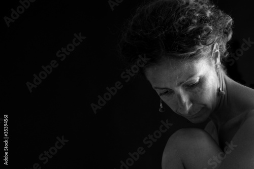 Black and white portrait of caucasian woman.