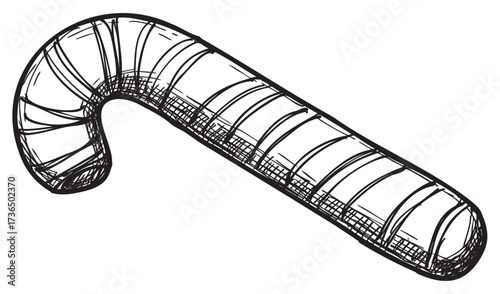 Black and white sketch of a candy cane with striped design – retro hand drawn illustration