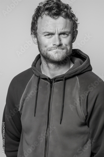 activewear, beard, hoodie, studio photography, monochrome, activewear, hi-res, photogenic, person, guy, expression, model, studio