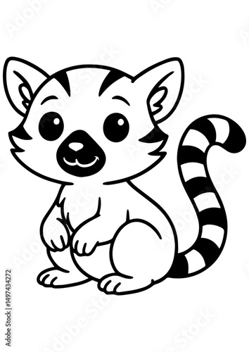 Black and white vector illustration of a cute baby lemur, ideal for engraving, prints, logos, kids books, and creative projects