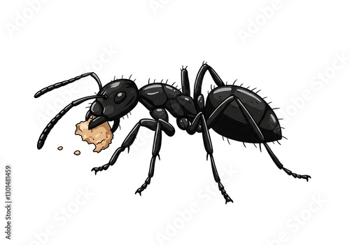 ant, black, insect, cartoon, illustration, detailed, closeup, crumb, food, eating, leg, antennae, shiny, carapace, nature, wildlife, art, drawing, graphic, design, vector, pest, control, animal, entomology, bug, creepy, crawly, realistic, style, image, picture, artwork, digital, commercial, photo, print, advertising, branding, marketing