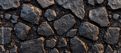 Black asphalt texture with rough stone patterns creating a durable background for construction or urban design projects.