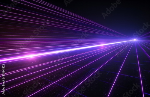 Black background, purple and blue laser beams, laser beam is very thin and long