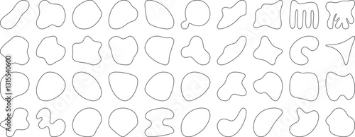 shape, organic, blob, vector, abstract, irregular, random, stain, round, liquid, background, element, splat, pattern, white, black, simple, logotype, oval, paint, silhouette, modern, smooth, stone, set, illustration, fluid, ink, pebble, blot, isolated, collection, collage, splodge, texture, contemporary, design, poster, fashion, art, geometric, graphic, branding, distortion