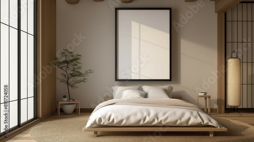 Black border frame mockup,Modern apartment hanok style bedroom,Wall frame mockup,3D render,