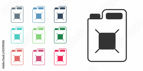 Black Canister for gasoline icon isolated on white background. Diesel gas icon. Set icons colorful. Vector