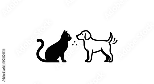 cat, dog, animal, pet, friendship, silhouette, black, white, icon, illustration, design, graphic, vector, isolated, communication, interaction, play, together, happy, companion, domestic, mammal, fur, tail, eye, mouth, shape, minimal, simple, concept, symbol, greeting, web, app, logotype, business, copy space, element, art, creative, style, representation