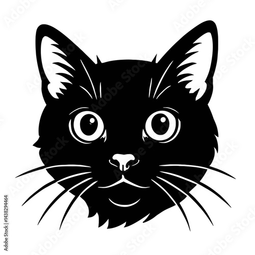 cat, felino, pet, animal, cute, face, head, portrait, illustration, vector, graphic, drawing, line art, black-and-white, monochrome, isolated, white background, furry, mammal, creature, companion, whisker, ear, eye, nose, mouth, character, expression, animal head, simple, clean, black cat