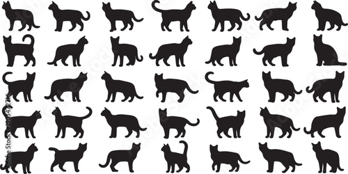 Black Cat Silhouette Design Set Isolated Cartoon Vector