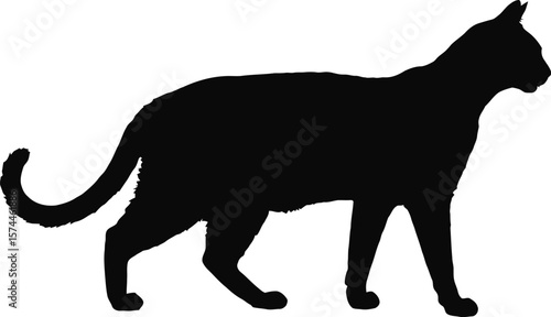 cat, felino, silhouette, black, animal, mammal, domestic, pet, walking, standing, tail, ear, paw, profile, half face, simple, graphic, isolated, white background, clean, elegant, graceful, sleek, creature